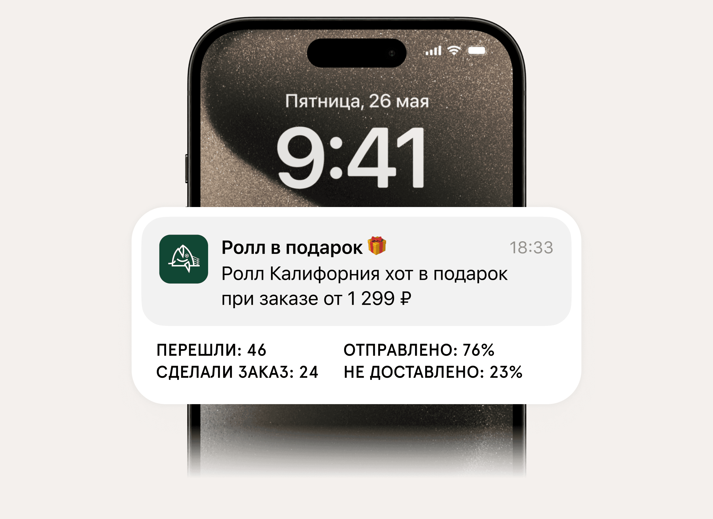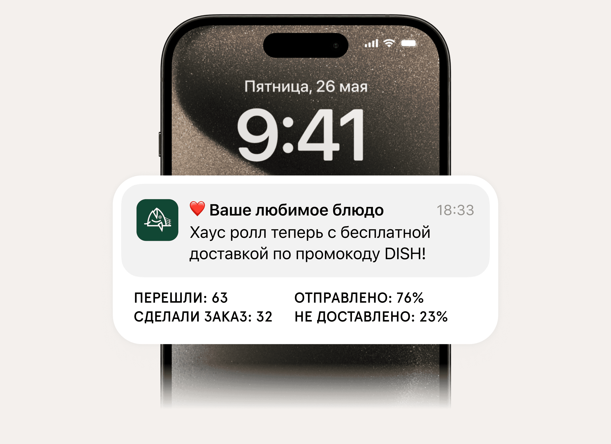 Пуши с акциями и новостями увеличивают частоту заказов и средний чек. И помогают загрузить «низкие часы» и отстающие производства.
