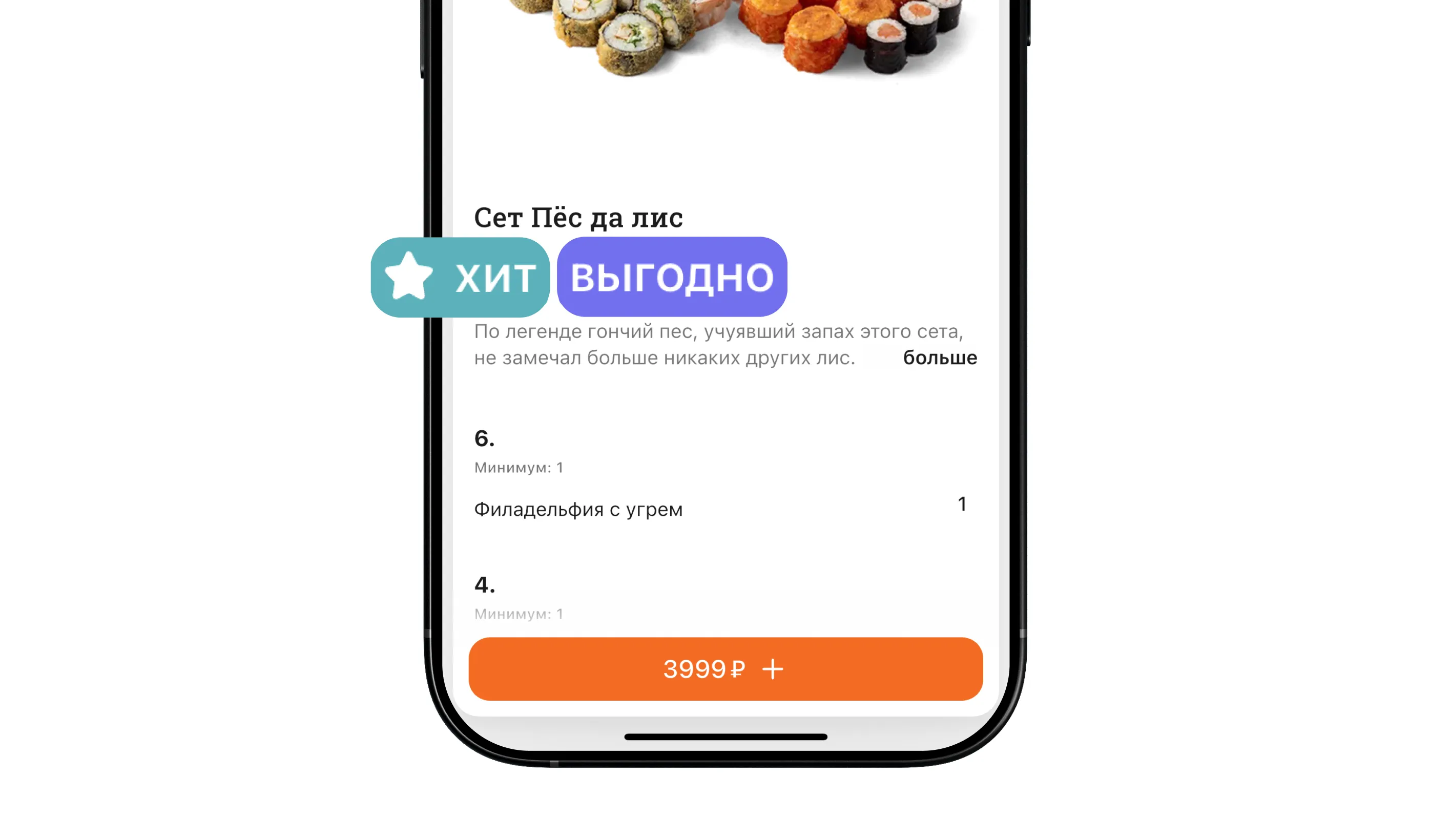Команда роста предположила, что если переместить сеты в верх меню, то гости начнут их брать чаще. А если еще добавить к карточкам сетов яркие плашки и анимацию, то продажи сетов вырастут в общем на 10-15%. И команда роста решила проверить эту гипотезу вместе с питерской сетью дарков, СушиФокс.