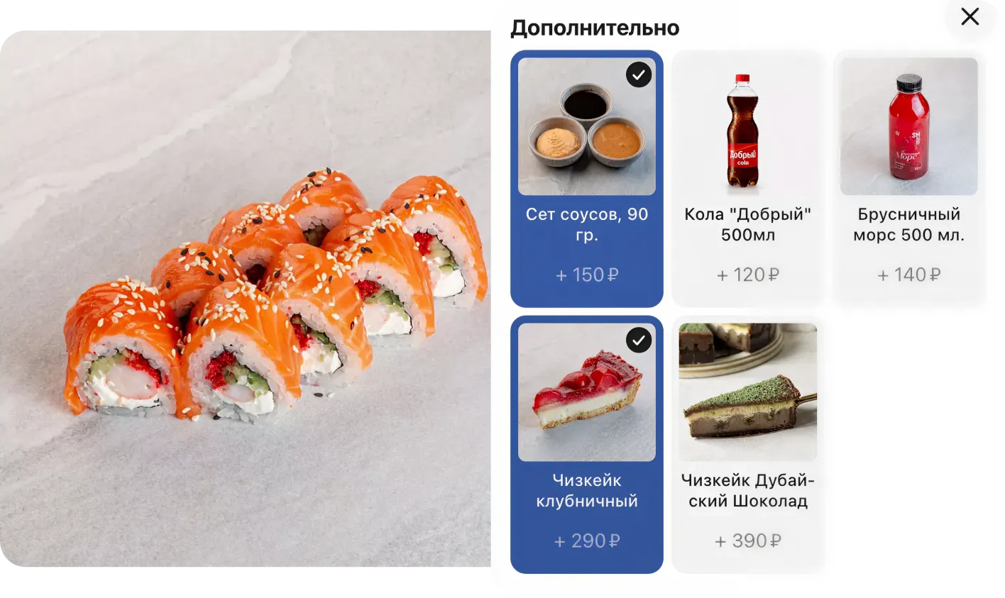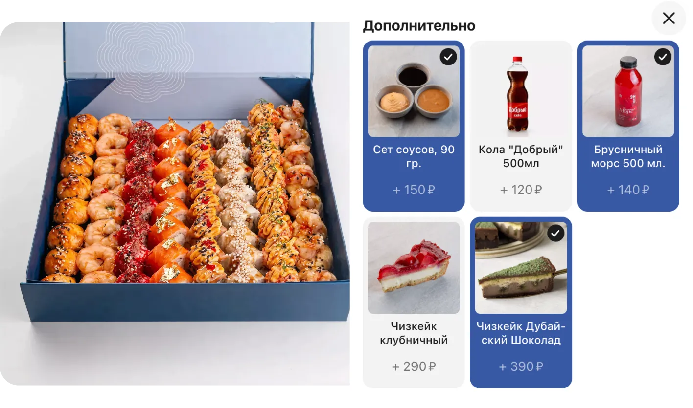 Наша команда роста порекомендовала крупной сети доставки роллов и пиццы из Улан-Удэ, Sushi House, добавить апсейл в их карточки блюд, чтобы вырастить допродажи — и они это отлично реализовали