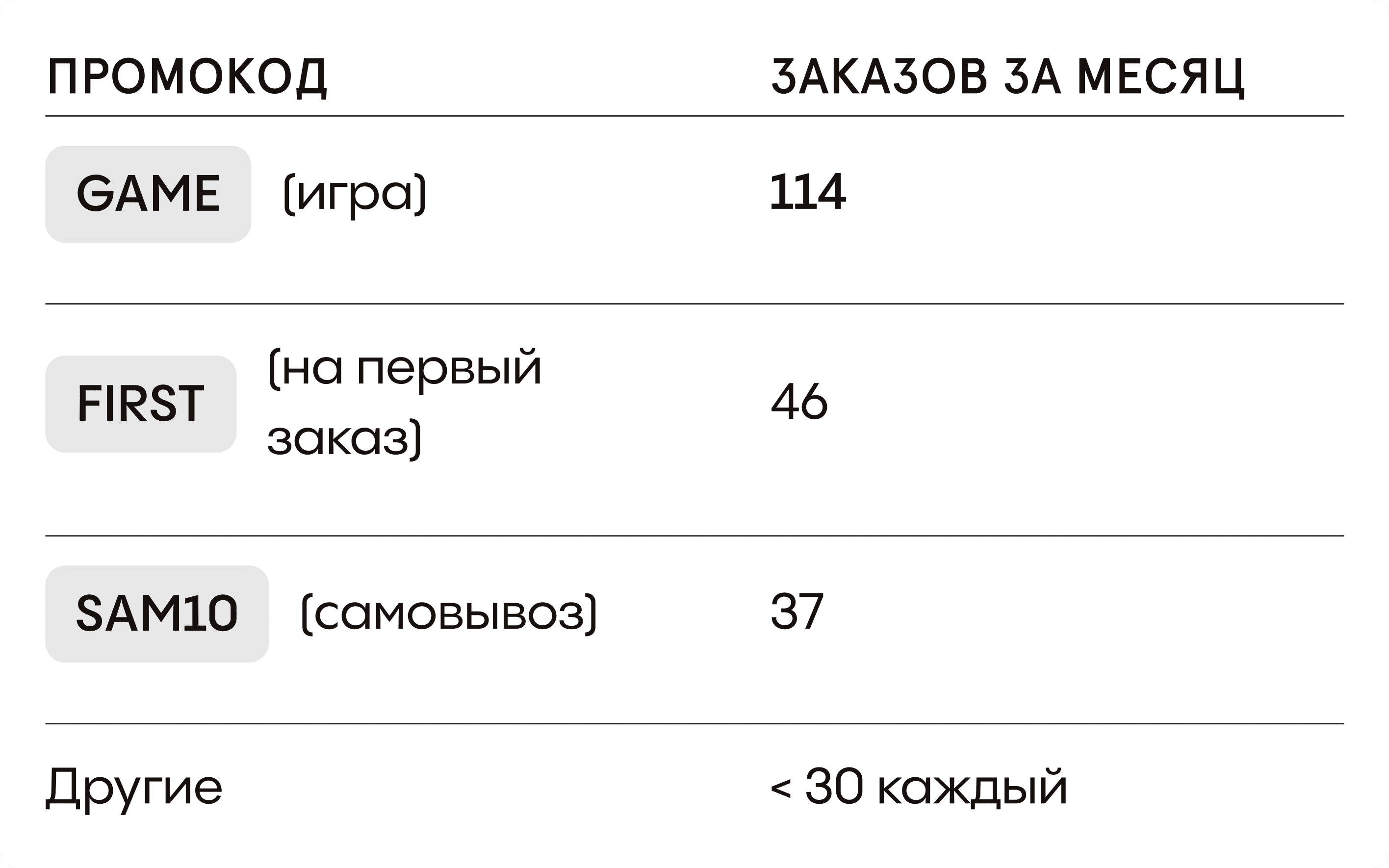 114 заказов по промокоду;