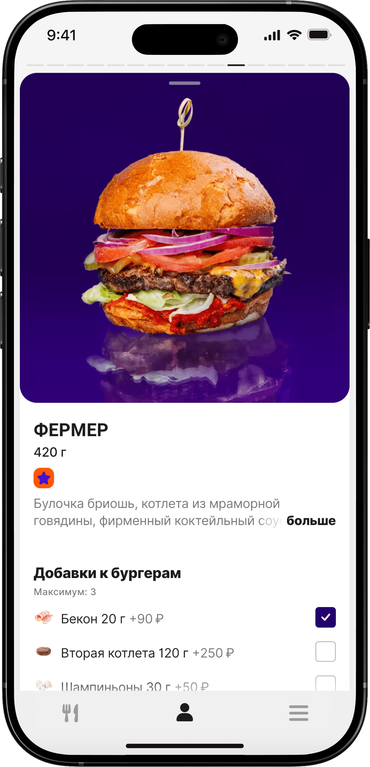 Для бургерной и службы доставки бургеров мы предлагаем высокоэффективную платформу, которая полностью адаптирована под ваш бизнес. Наша система позволяет вам легко запустить современный сайт и мобильное приложение, обеспечивая клиентам простой и удобный доступ к вашему меню. Вы сможете предложить разнообразные варианты заказа: на доставку, с собой или в зале, что делает процесс получения заказа максимально удобным для ваших клиентов. Интуитивно понятный интерфейс и яркий дизайн сделают меню привлекательным и помогут быстро оформлять заказы. С помощью встроенных маркетинговых инструментов и программы лояльности вы сможете привлекать новых клиентов и удерживать старых, организуя акционные кампании и персонализированные предложения. Это не только повысит уровень удовлетворенности, но и увеличит частоту повторных заказов. Интеграция с POS-системой автоматизирует процессы и облегчает управление бизнесом, позволяя вам сосредоточиться на качестве бургеров и обслуживания. Аналитические инструменты предоставят вам ценные данные о предпочтениях клиентов, что поможет в оптимизации меню и повышении среднего чека. С нашей платформой для бургерной и доставки вы получите мощный инструмент, который поможет вашему бизнесу расти и выделяться на фоне конкурентов, создавая уникальный опыт для ваших клиентов!