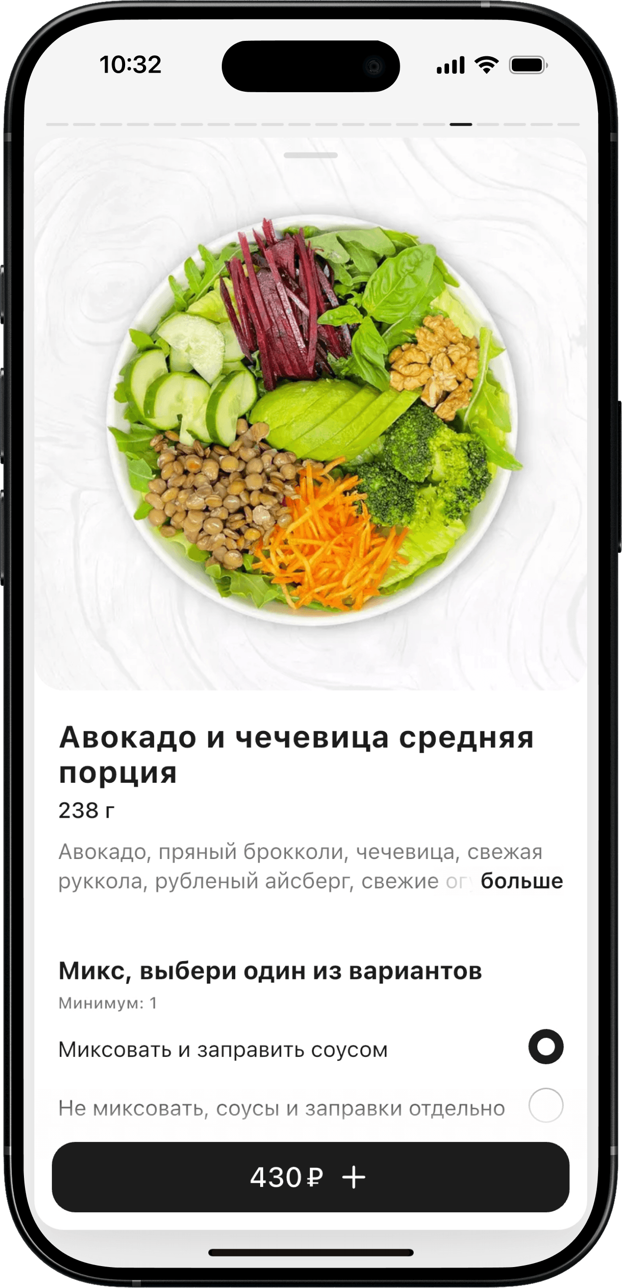 Апсейл в карточке блюда