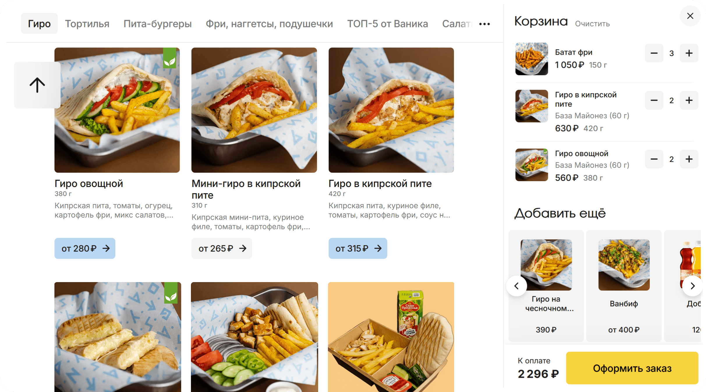 Функции выбора блюд и заказа, как у лидеров рынка