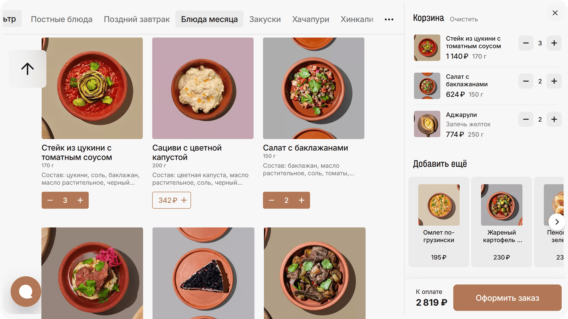 Функции выбора блюд и заказа, как у лидеров рынка