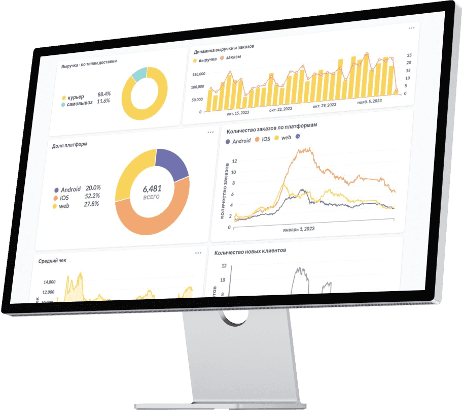 Управляйте заказами и акциями, следите за показателями в одном окне