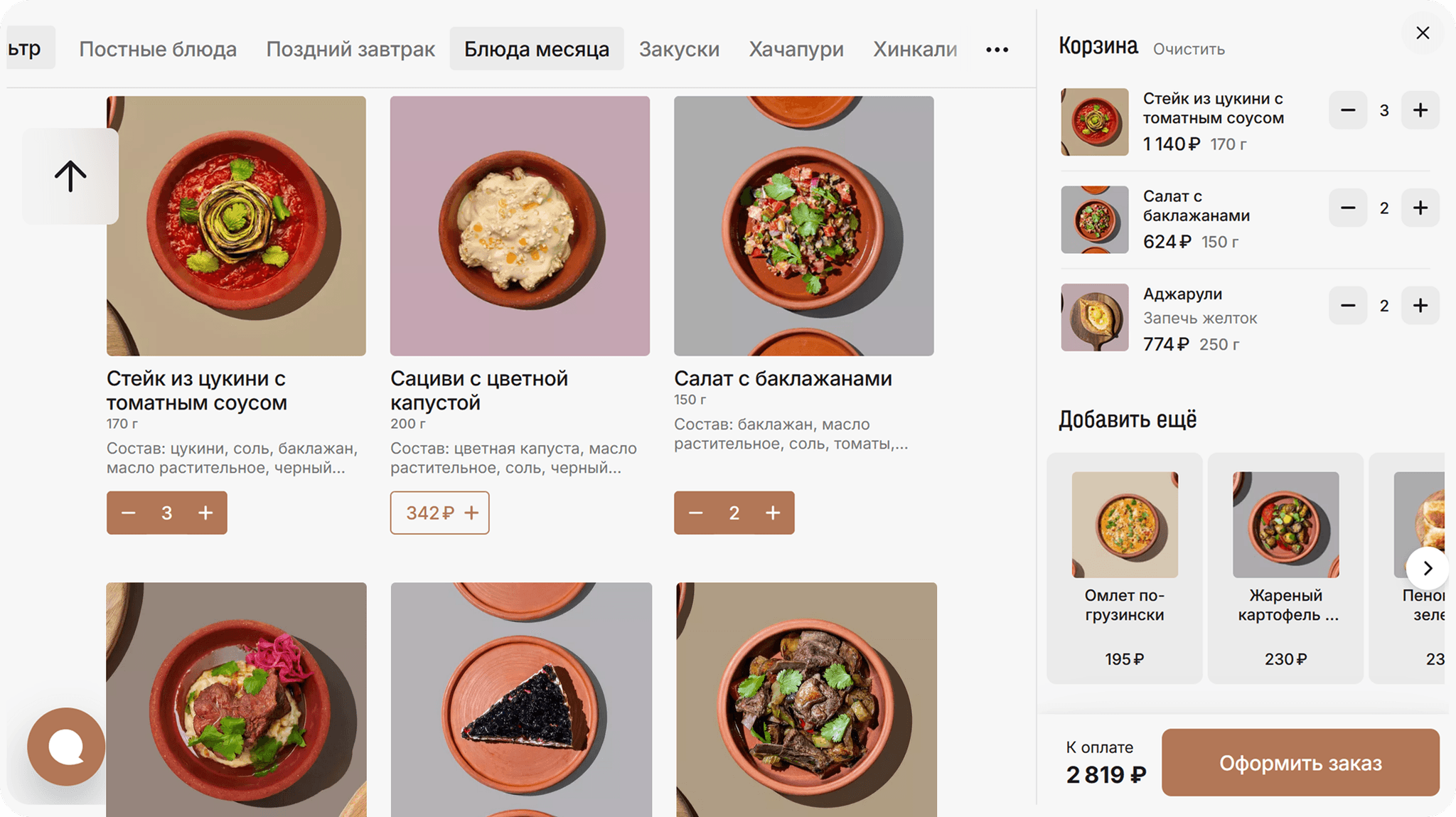 Функции выбора блюд и заказа, как у лидеров рынка