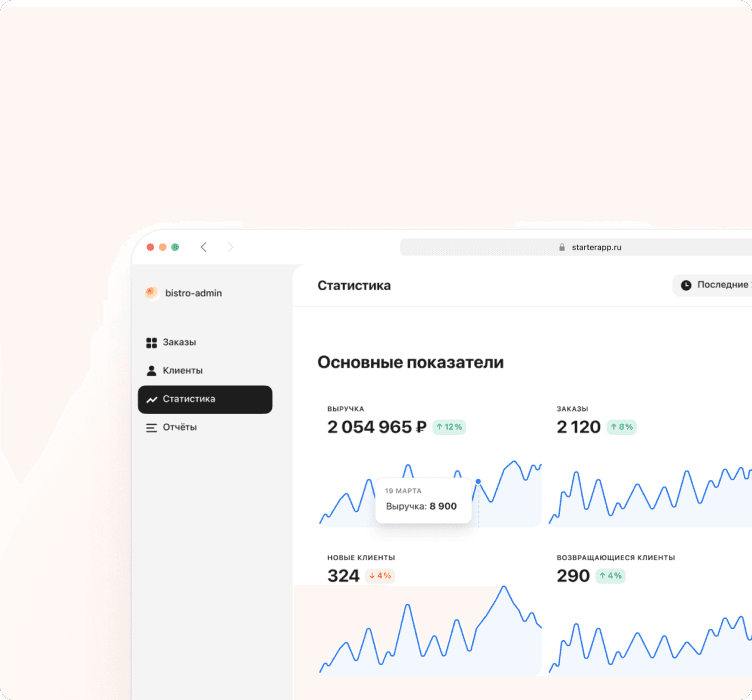Откройте всё, что нужно ресторану для роста: собственная доставка без сторонних комиссий, мощные маркетинговые инструменты, автоматизация процессов и готовые пути для роста выручки.